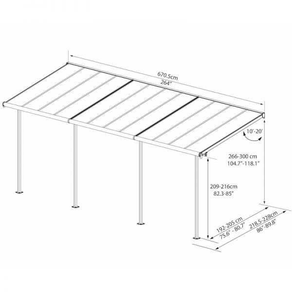Sierra Aluminium 2.3m x 6.9m Grey Polycarbonate Patio Cover & Pergola - Canopia By Palram