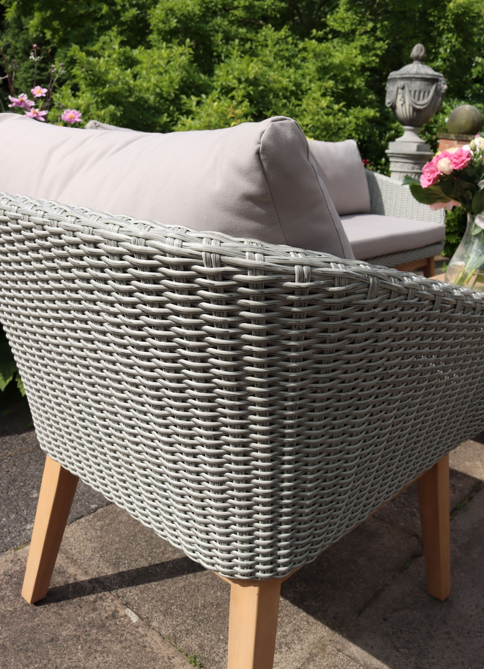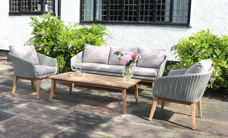Crafted from high-quality wood, this lounge set boasts a sturdy frame that can withstand the unpredictable British weather. The rattan weave not only adds a stylish flair but also enhances durability, ensuring your furniture remains beautiful for years to come. The thick, soft cushions are upholstered in a neutral fabric, providing both comfort and versatility to match any outdoor decor.