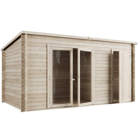 Store More Darton Pent Log Cabin Summerhouse with Side Storage - Pressure Treated -14ft x 8ft