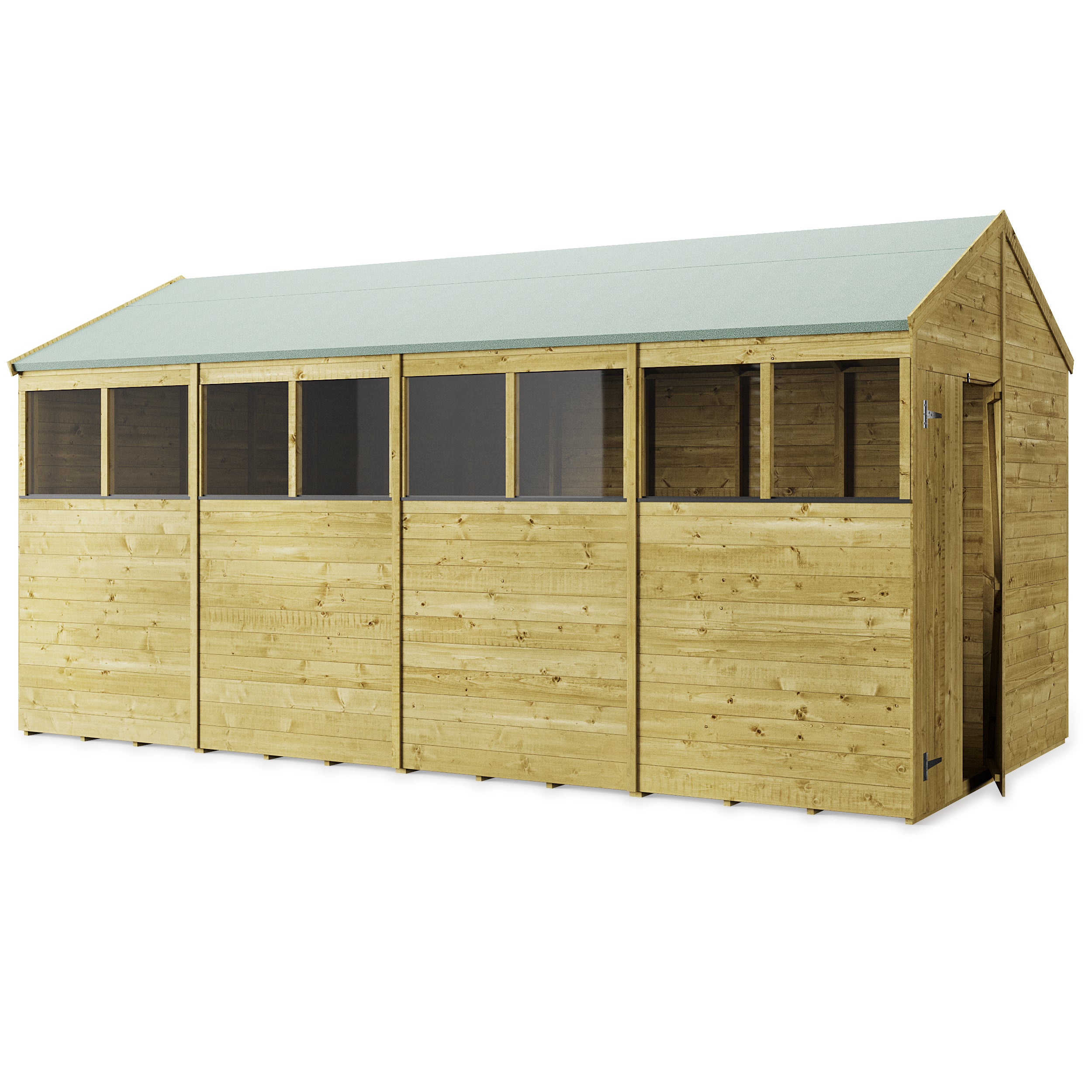 Store More 16x8 Large Tongue and Groove Apex Garden Shed with Double Doors & Windows