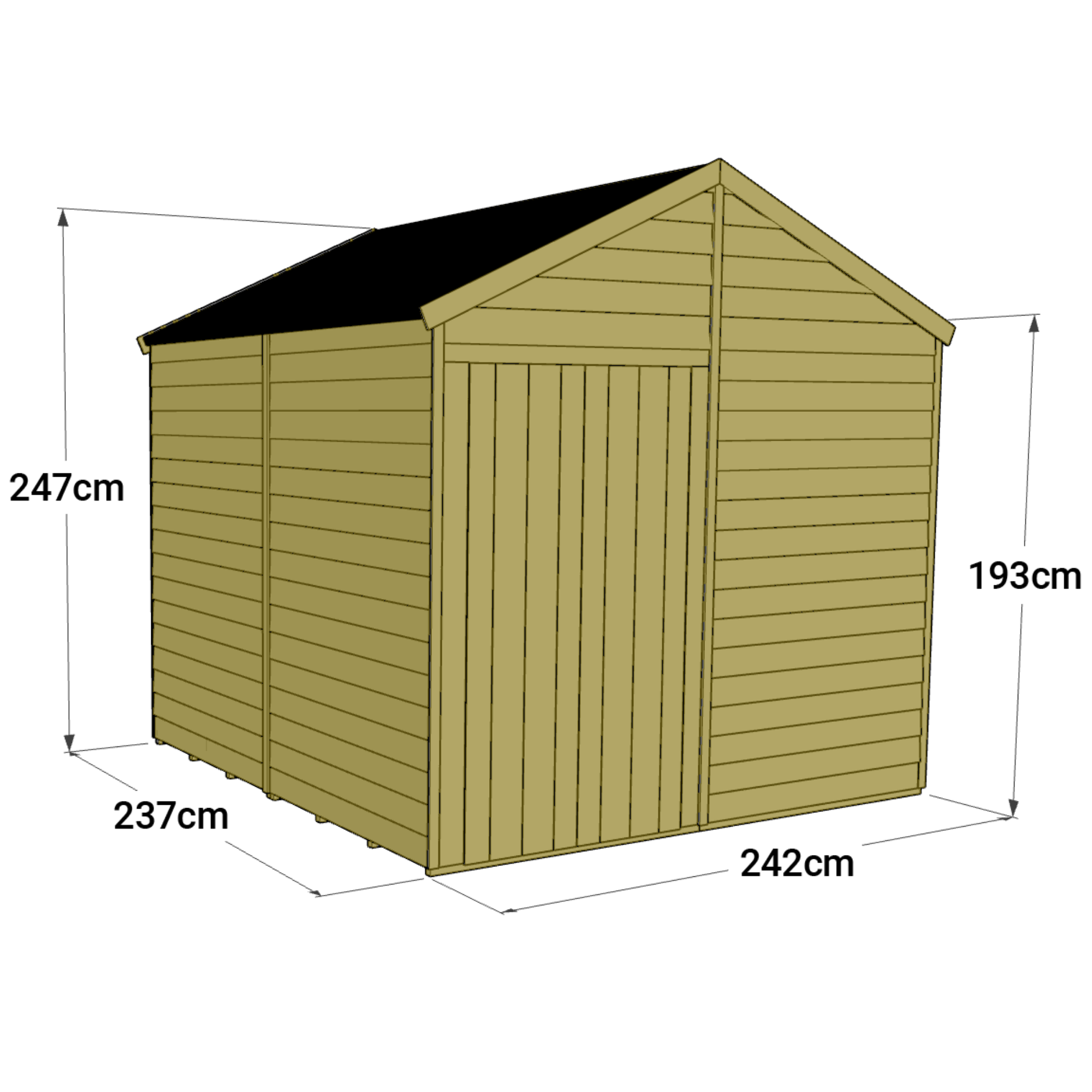 - Improves drainage with an apex roof, protecting your shed from water damage.