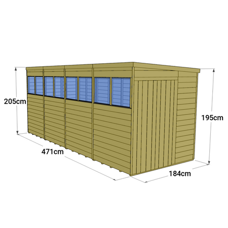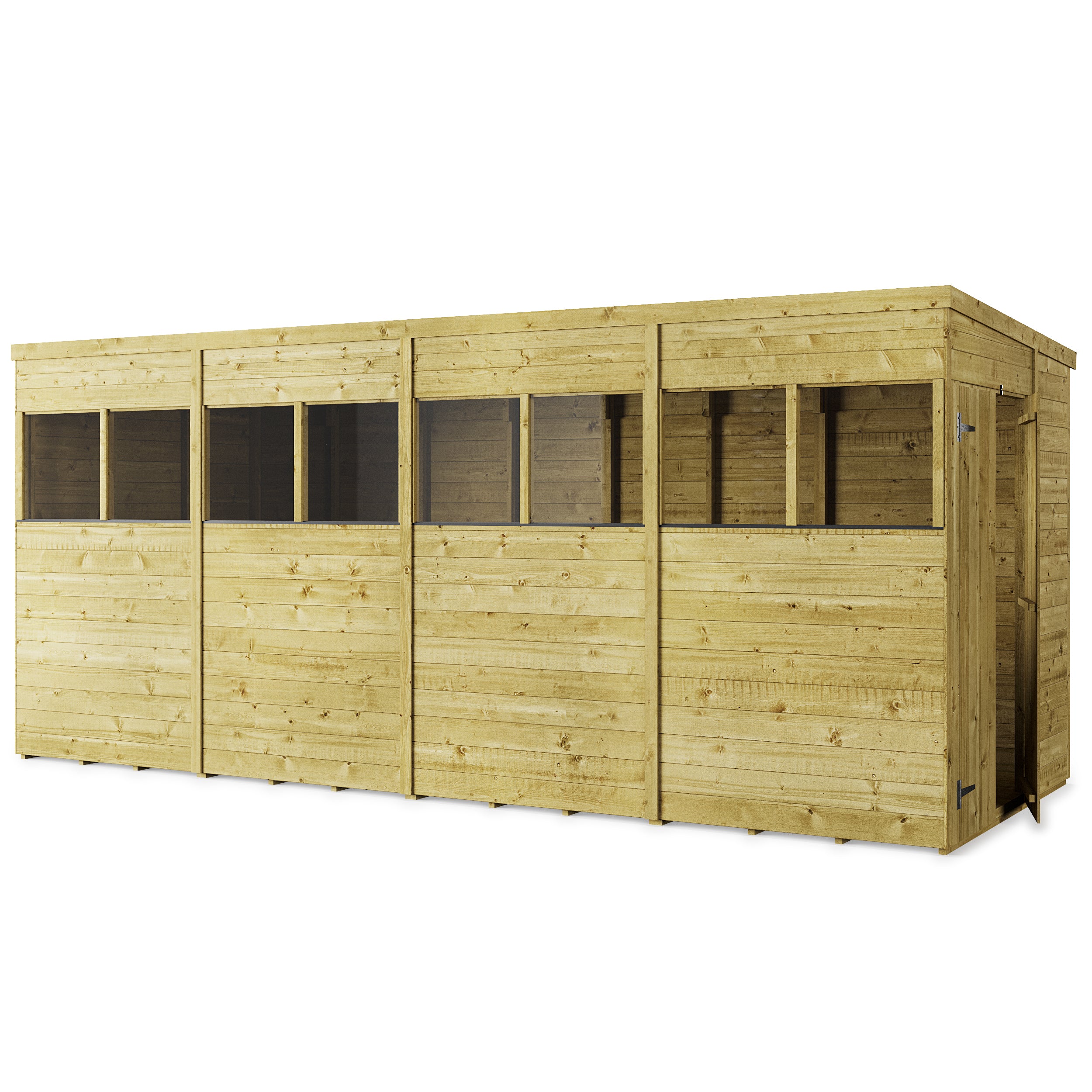 Store More 16x6 Large Tongue and Groove Pent Shed with Double Doors & Windows