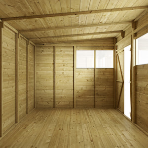 The Store More 4x8 Small Tongue and Groove Pent Shed is designed to meet the diverse storage needs of any garden or backyard. Its spacious interior is perfect for housing gardening tools, outdoor furniture, or even serving as a potting shed for those who love to cultivate their green thumb. The pent roof design not only enhances its visual appeal but also ensures effective rainwater drainage, keeping your shed dry and well-maintained.