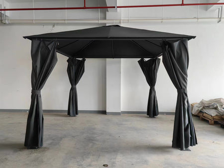Titan 3m x 3m Grey Steel Frame Gazebo & Pergola with Curtain Sides