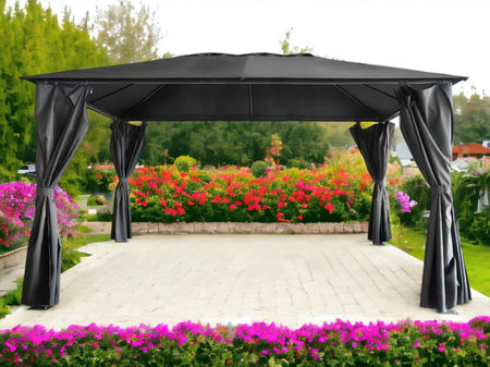 The modern design features clean lines and a flat roof, providing a contemporary look that enhances your garden's appeal. Assembly is straightforward, requiring no specialised tools, so you can enjoy your new gazebo in no time. Maintenance is minimal; simply wipe down the frame and curtains as needed to keep them looking fresh and inviting.