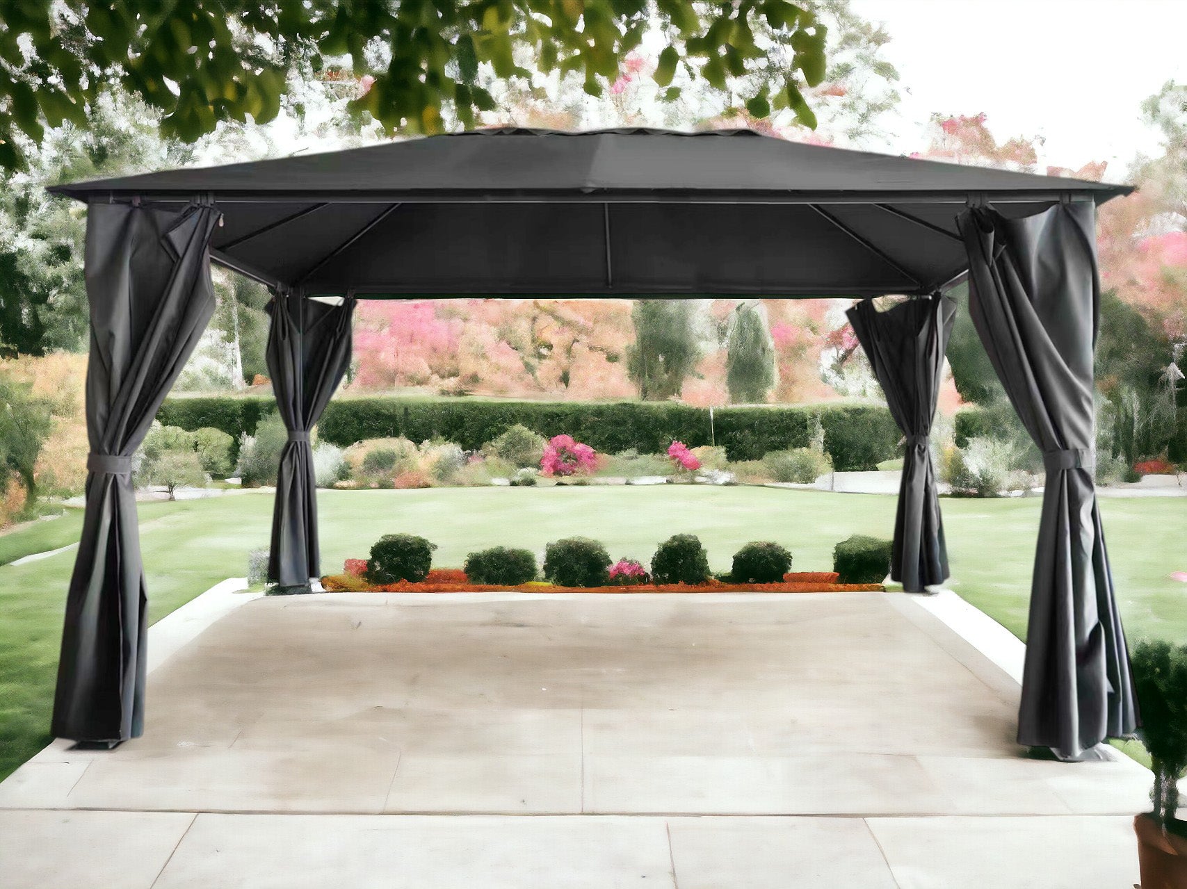Crafted from high-quality galvanised steel, this gazebo is built to last. The robust frame is designed to resist rust and corrosion, ensuring it remains a staple in your garden for years to come. The curtain sides are not only stylish but also functional, allowing you to create a private retreat or an open-air space depending on your needs.