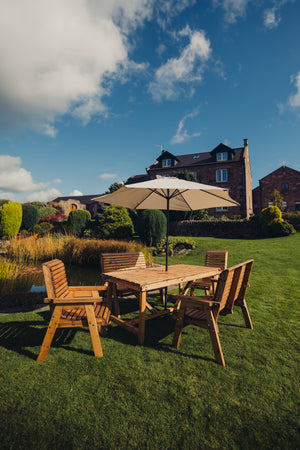 Valley 6 Seater Chunky Wooden Garden Dining Set with 2 Benches & 2 Chairs