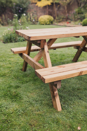 Crafted from high-quality, treated wood, this picnic table is built to last. The thick legs and cross-bracing not only enhance stability but also ensure that it remains steadfast on various surfaces, even in the unpredictable British weather. The natural wood finish is not only aesthetically pleasing but also treated for weather resistance, ensuring that your table will look great for years to come. Plus, with a remarkable 20-year rot resistance, you can enjoy peace of mind knowing your investment is protected.