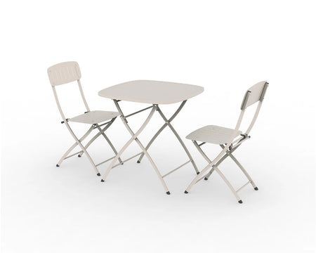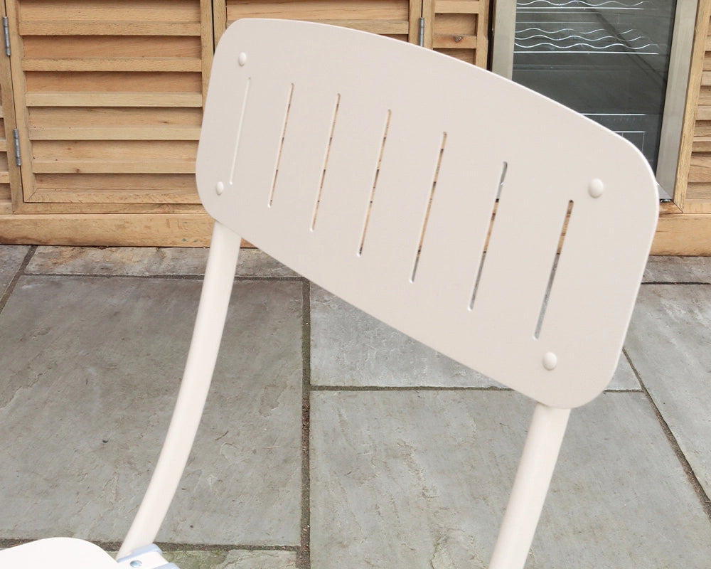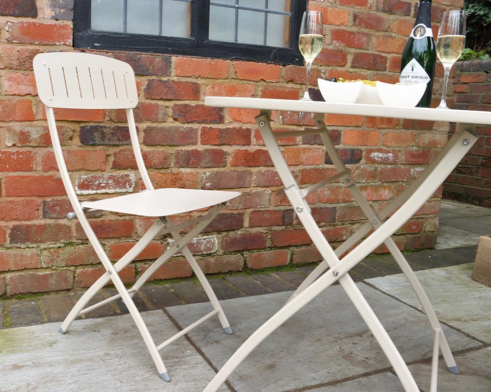With its minimalist design and elegant champagne colour, the Venice Bistro Set complements a variety of outdoor aesthetics, from contemporary to traditional. The slatted seats and backs of the chairs provide comfort while maintaining a stylish look. Easy to assemble and maintain, this set is perfect for those who want to enjoy outdoor dining without the hassle of complicated setups.