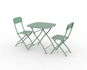 Crafted from high-quality galvanised steel, this bistro set is built to withstand the elements while maintaining its elegant appearance. The weather-resistant finish ensures that it remains vibrant and functional, season after season. The folding mechanism of the chairs adds to the practicality, allowing for easy storage when not in use. Enjoy peace of mind knowing that this set is designed for durability and longevity.