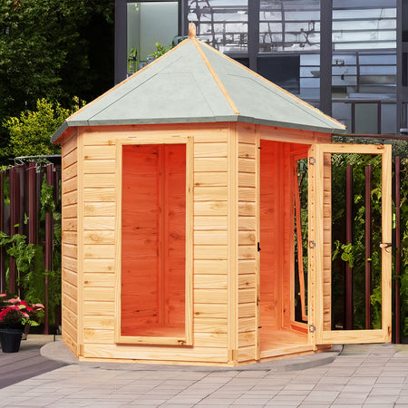 The Welburn Hexagonal Summerhouse is more than just a garden building; it’s an extension of your home that enhances your outdoor lifestyle. With its spacious interior and elegant design, this summerhouse is ideal for a variety of uses—from hosting garden parties to enjoying quiet afternoons with a book. Its unique hexagonal shape not only adds a touch of architectural charm but also maximises the usable space, making it a delightful addition to any garden.