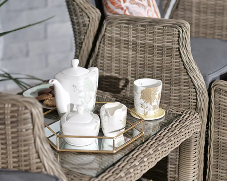 The Wentworth Rattan set boasts a modern design that seamlessly blends with any outdoor decor. The minimalist table serves as a functional centerpiece, perfect for drinks or snacks. Maintenance is a breeze; simply wipe down the surfaces to keep them looking pristine. Unlike other outdoor furniture, this set combines style with practicality, ensuring you enjoy your outdoor space to the fullest.