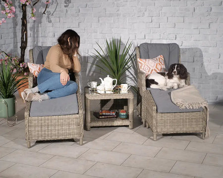The Wentworth Rattan Deluxe Gas Powered Reclining Chair Set is the epitome of outdoor comfort and style. With its two gas-operated reclining chairs, two stools, and a sleek table, this set is perfect for leisurely afternoons in your garden or intimate gatherings on your patio. Enjoy the freedom to recline at your leisure, making every moment spent outdoors a delightful experience.