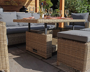 Wentworth Rattan Garden Dining Set with Sofa, 2 Armchairs, 2 Stools & Height Adjustable Table