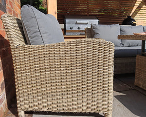 Not only does the Wentworth set boast a modern aesthetic with its neutral colour palette, but it also promotes a relaxed atmosphere for socialising. The thoughtful design encourages conversation, with the sofa and armchairs arranged to create an inviting space. Maintenance is a breeze; simply wipe down the surfaces and store the cushions indoors during adverse weather to keep them looking fresh.