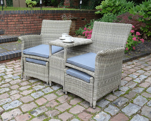 Wentworth Rattan Garden Lounge Sets with 2 Chairs, 2 Footstools & Cushions