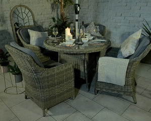 Wentworth Rattan Round Imperial Garden Dining Set with 4 Chairs & Cushions
