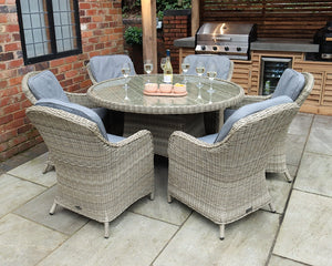 Wentworth Rattan Round Imperial Garden Dining Set with 6 Chairs & Cushions