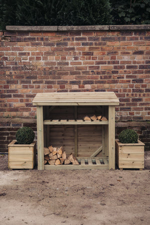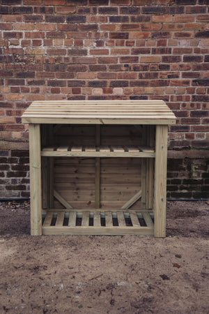 Wooden 4ft x 4ft Garden Log Store with Kindle Shelf - Churnet Valley