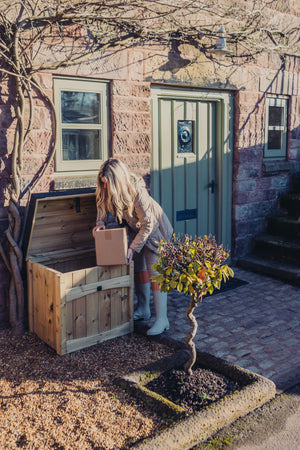 Transform your garden into a secure haven for your deliveries with our Wooden Parcel & Deliveries Box. Perfect for the unpredictable British weather, this stylish and practical storage solution ensures your parcels remain safe and dry, even when you're not at home. Handmade in the UK, this beautifully crafted box not only protects your deliveries but also adds a touch of rustic charm to your outdoor space.