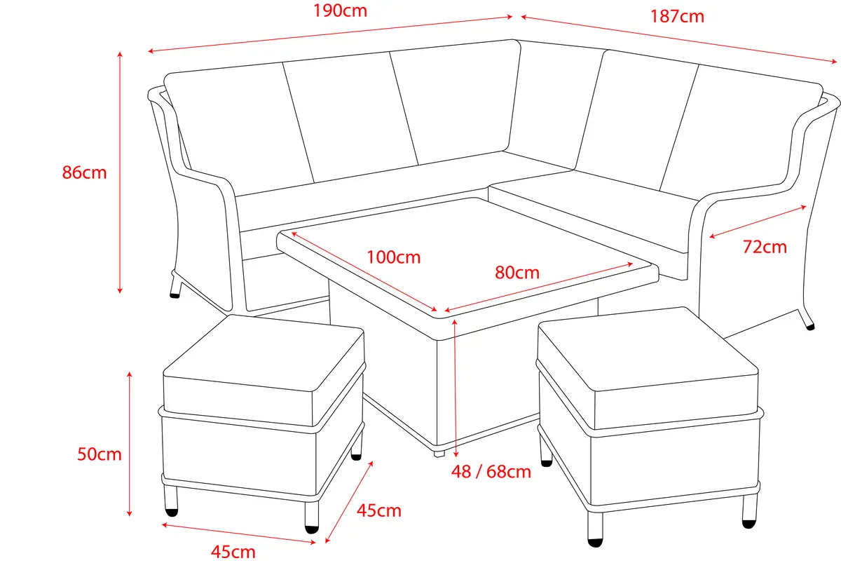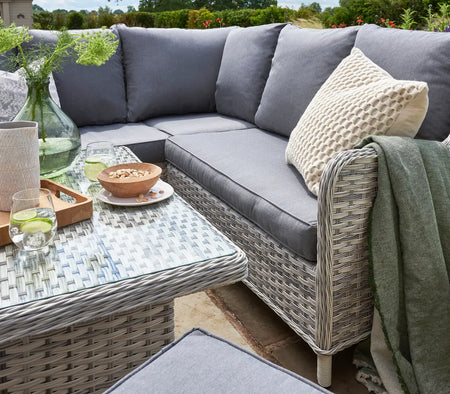 The Wroxham Mini Corner Garden Lounge Set is a beautifully crafted outdoor furniture solution that combines style and functionality. Its modular design allows it to fit snugly into any corner of your garden or patio, making it ideal for both small and large spaces. With plush cushions and a central table, this set is perfect for enjoying alfresco dining, hosting gatherings, or simply relaxing in the sun.