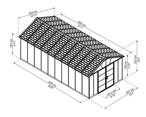 Yukon 11 x 21.3 Dark Grey Plastic Garden Apex Shed (no Floor) - Canopia by Palram